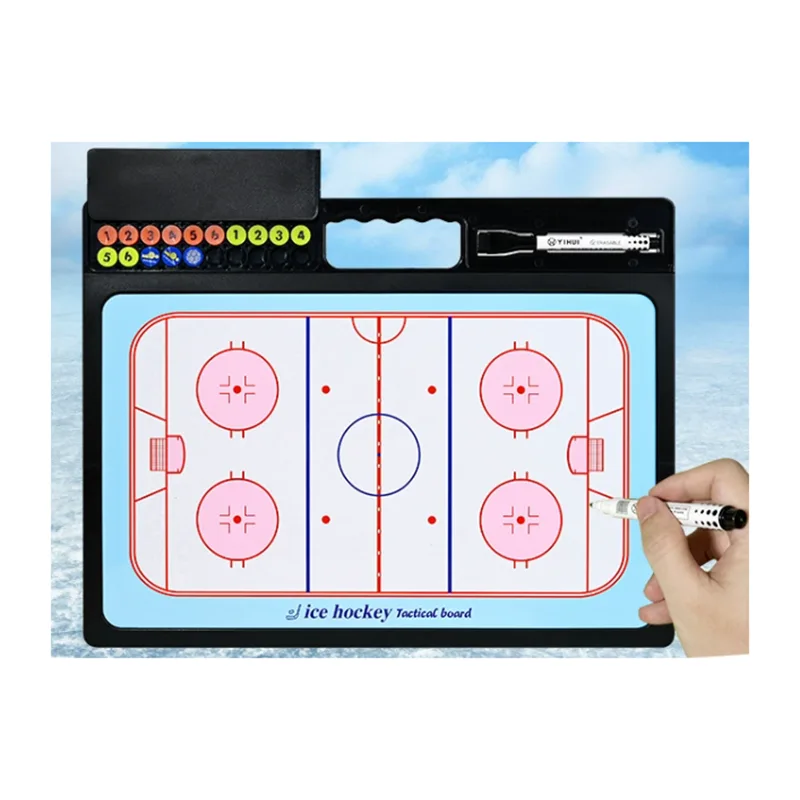 คณะกรรมการยุทธวิธีฮ็อกกี้น้ำแข็งของจีนจาก Jinlangte Sports ได้รับการออกแบบให้มีขนาดเท่ากับลานสเก็ตฮ็อกกี้น้ำแข็งมาตรฐาน ครอบคลุมพื้นที่สำคัญ เช่น กล่องประตู เส้นสีน้ำเงิน เส้นสีแดง และวงกลมกลาง โค้ชสามารถใช้แผ่นแม่เหล็กเพื่อจำลองตำแหน่งและการเคลื่อนไหวของผู้เล่น หรือใช้เครื่องหมายเพื่อร่างเส้นทางรุก รูปแบบการป้องกัน หรือการเล่นที่มีพลัง วิธีการที่ใช้งานง่ายนี้ช่วยให้สามารถสื่อสารการเตรียมยุทธวิธีที่ซับซ้อนกับผู้เล่นได้ในเวลาที่บันทึกได้ ทำให้มั่นใจว่าพวกเขาจะรักษาการดำเนินการที่ชัดเจนในระหว่างการแข่งขันที่เข้มข้น
